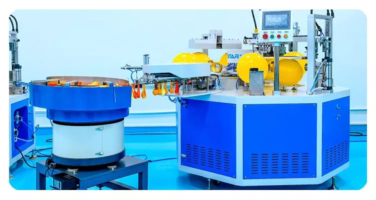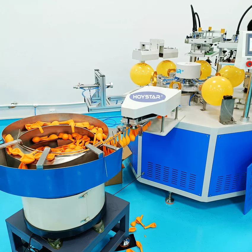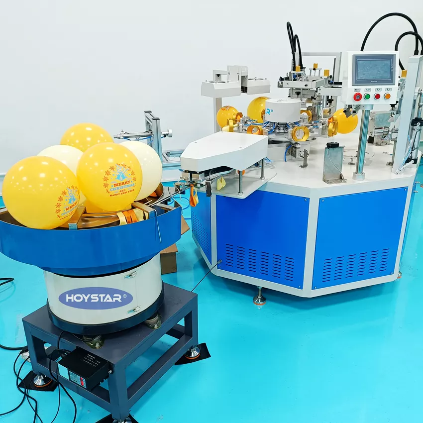 HOYSTAR е сигурен производител и снабдувач во Кина; Оваа машина за печатење на екран HOYSTAR 2 балони во боја со автоматско внесување е дизајнирана за печатење на латекс балони. Опремен со ротациона работна маса, автоматско полнење, автоматско дување, автоматско ротирање, автоматско сушење, функции за автоматско растоварување. Контрола на екран на допир со PLC, интерфејс лесен за корисникот за безбедно, интуитивно работење. Машината комбинира брзина, прецизност и леснотија на користење.