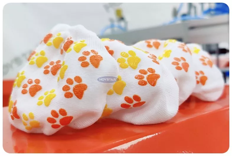 Нашата машина за печатење на чорапи со 2 бои што не се лизгаат е дизајн за висококвалитетни чорапи кои не се лизгаат како што се чорапи за бебиња, чорапи за домашни миленици, чорапи за возрасни, фудбалски чорапи, чорапи за држење. Погоден за производители специјализирани за спортски, медицински, детски и јога чорапи за купување за печатење