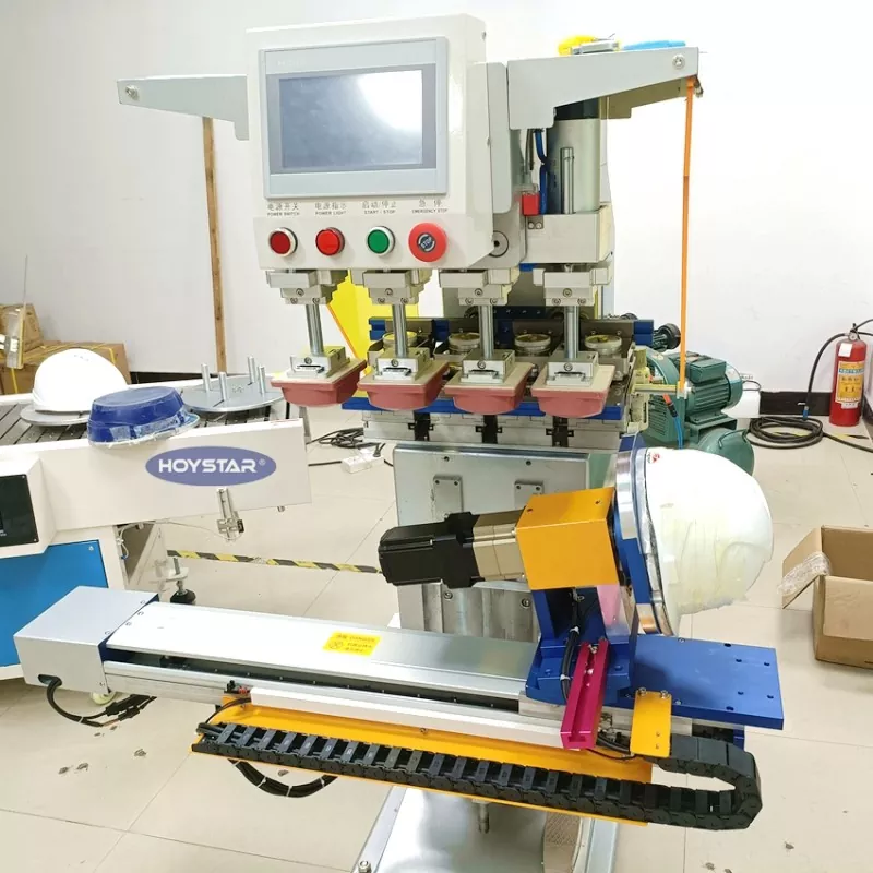 Купувајте приспособена машина за печатење со 4 бои за шлем од Dongguan Hoystar Machinery Co., Ltd., која е еден од производителите и добавувачите во Кина. Оваа машина за печатење HOYSTAR 4 боја подлога за шлем опремена со PLC контролен панел со екран на допир, лесен за ракување. Оваа машина има контрола на серво моторот за автоматско ротирачко печатење, нудејќи опции за печатење на 1 страна, 2 страни или 4 страни на кацигите. Работната маса е управувана лево/десно, ротирачки ангел,  висините на производот може да се прилагодат. Секоја глава за печатење е независно прилагодлива и може да се постави посебно.