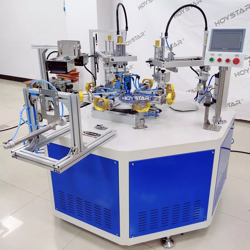 Автоматска машина за печатење на екран со 2 балони во боја со ротациона работна маса, мал отпечаток, стабилно печатење, непречено работење. И со полуавтоматски и со автоматски режими, операторите можат да се прилагодат на различни производствени потреби.