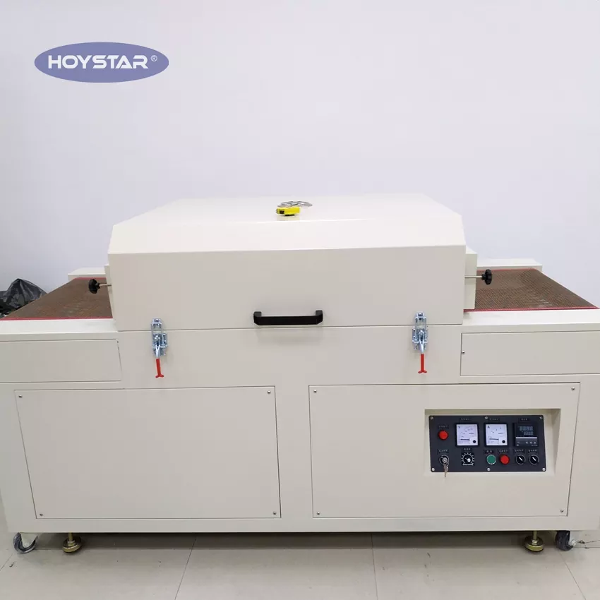 IR Текстилна тунелна машина за сушење за маици е произведена од фабриката HOYSTAR. Како производител и снабдувач во Кина, го обезбедивме со висок квалитет на трговците на големо низ целиот свет. Овој HOYSTAR IR Текстилен тунелен фен за маица со подвижна лента, дизајнирана е за лабораторија и масовно производство. Овој систем на подвижна лента има тивок мотор со различна брзина, кога машината за сушење има различни оптоварувања, двигателот за прилагодување на брзината и брзината на транспортерот се униформни, тој е погоден за различни видови предмети. Таа е погодна за печатење, сликање, лепило со топло поставување, млаз со мастило и печатење на маици итн.