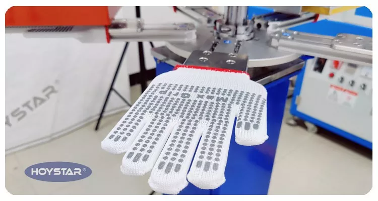 Како професионален производител во Кина, би сакале да ви обезбедиме машина за печатење на екран со нелизгачки ракавици HOYSTAR со голема брзина. Нашите машини прифаќаат PLC и контрола на екран на допир и главно се користат за печатење на разни видови ракавици. Машината може да печати на памучни ракавици, плетени ракавици итн. Машина опремена со рерна за сушење која може добро да ги исуши силиконот и мастилото.