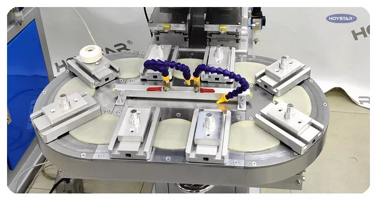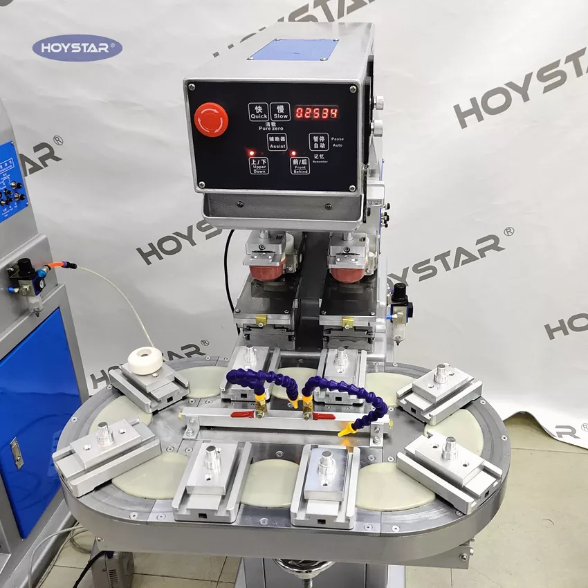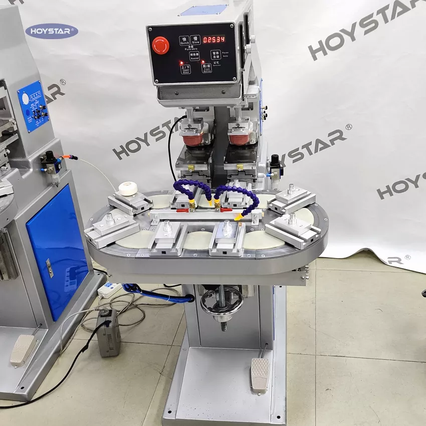 Како професионален производител во Кина, би сакале да ви обезбедиме високо-ефикасна машина за печатење HOYSTAR во две бои со ротирачки подлоги за маси. Оваа машина овозможува континуирано печатење на производи во две бои, со една регистрација на боја завршена во еден циклус. Во споредба со печатачите на подлоги од типот шатл, неговата брзина е многу брза. Погоден за печатење на различни предмети, вклучувајќи електронски производи, пластични школки, хардверски производи, канцелариски материјал и логоа на површината на малите уметности и занаети, може да ги задоволи вашите барања за печатење во две бои.